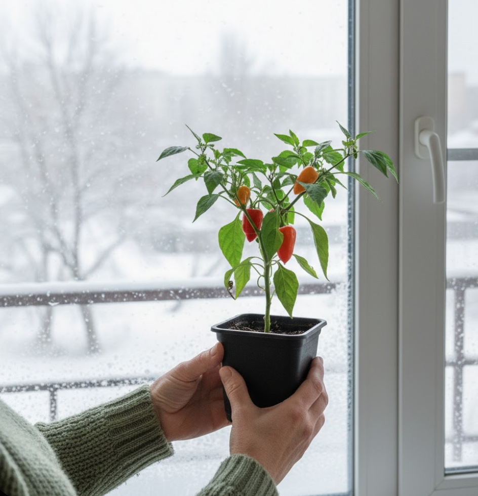 У мене «Гранді» ростуть прямо на кухні — виглядають як живий декор і завжди є жменя свіжих перчиків 🌶️ Навіть узимку кущі продовжували давати зав’язі.