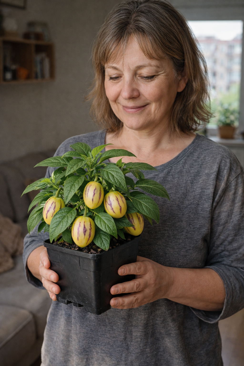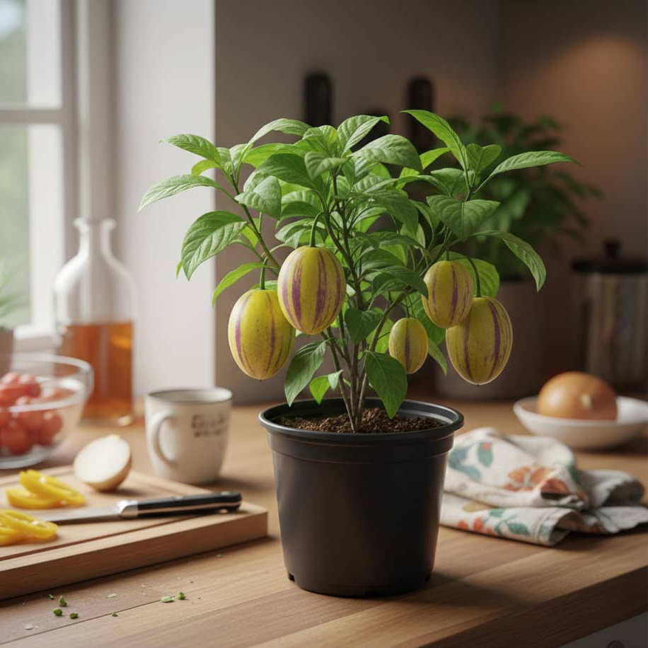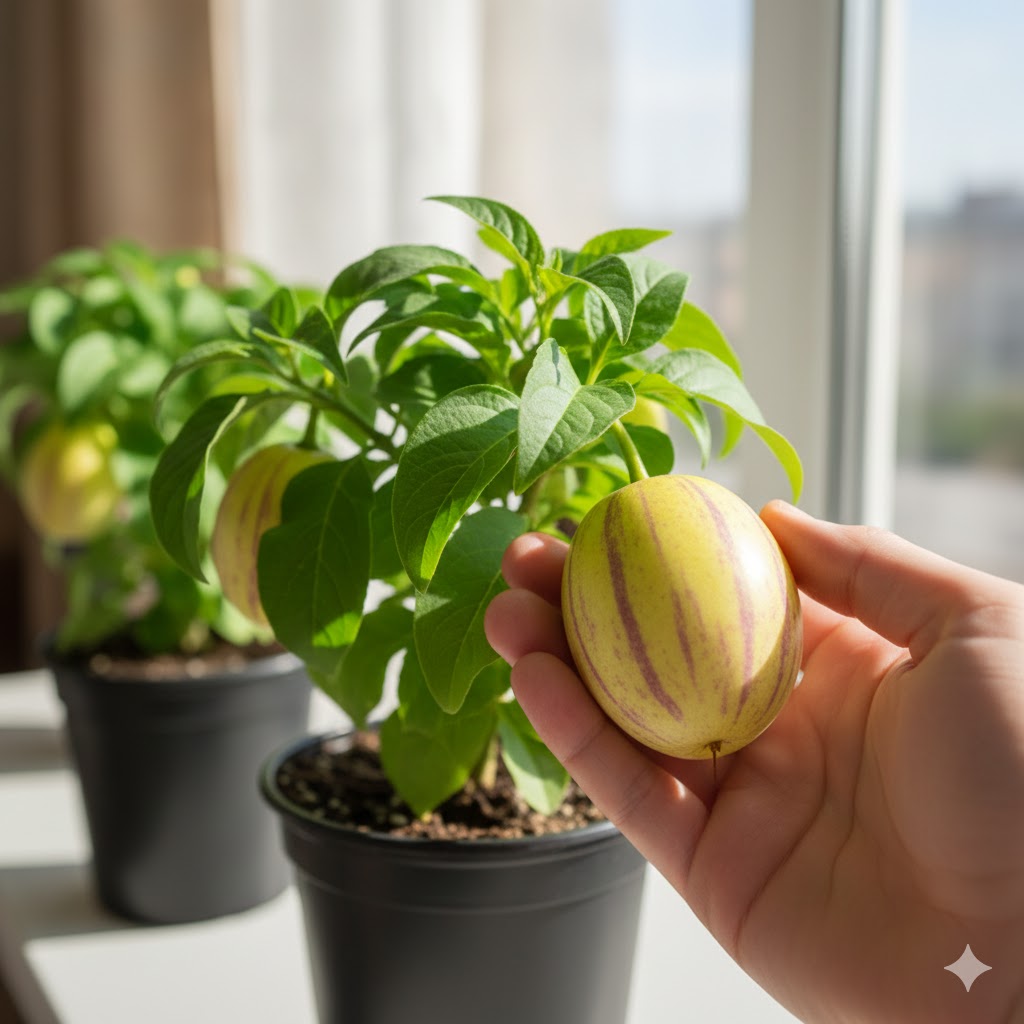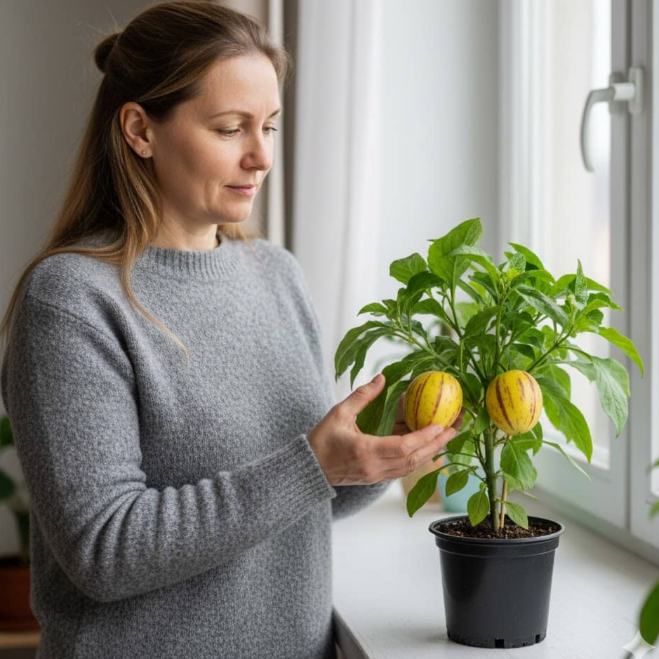 Поставте пепіно «Рума» на добре освітлене підвіконня або засклений балкон. Оптимально — багато розсіяного світла без різких протягів.