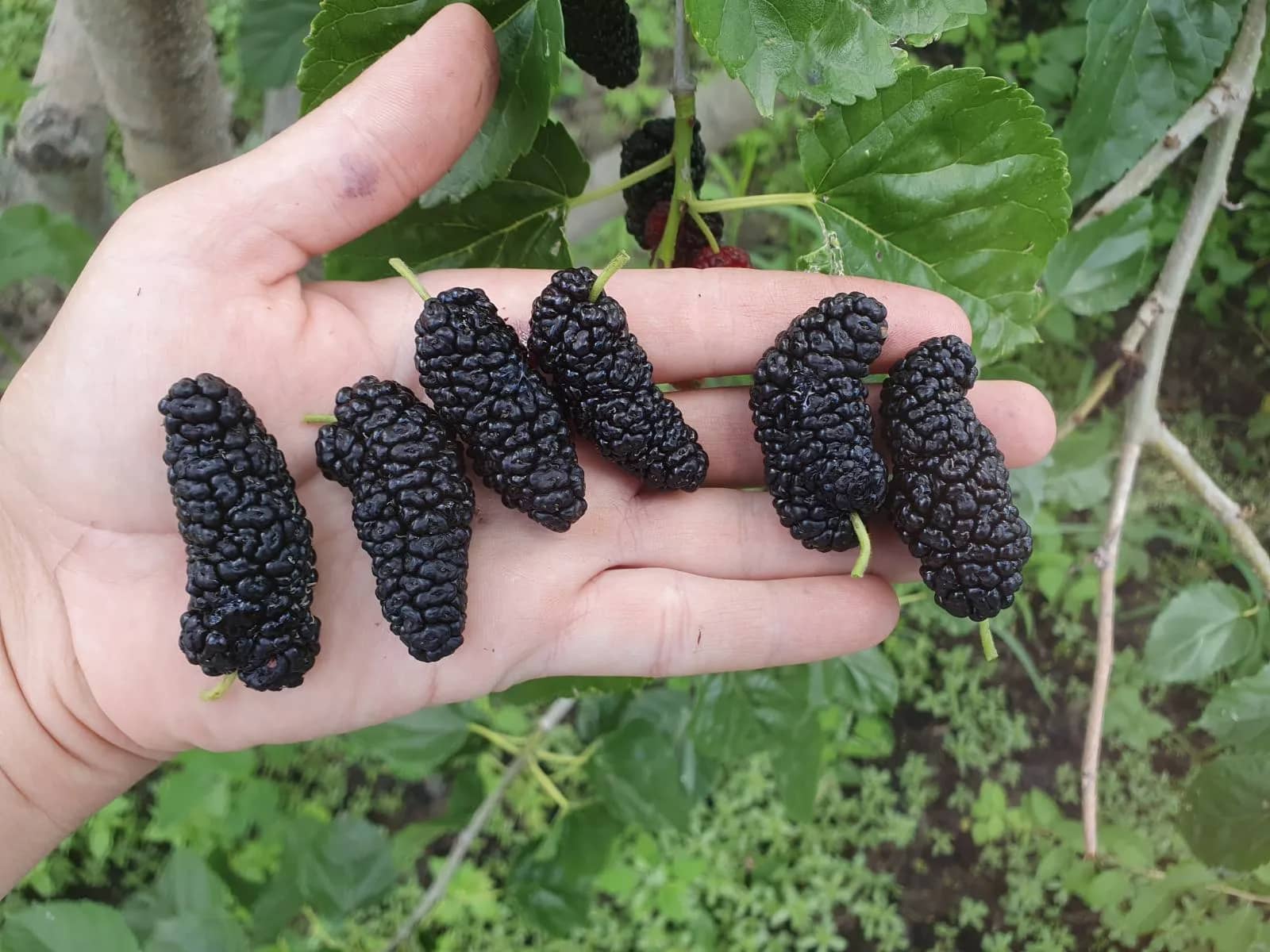 Черкаська область, 11 серпня 2025 року — Фермер із Черкащини Микола Гончар зібрав рекордний урожай шовковиці сорту “Чорна Баронеса”, отримавши понад 35 кг ягід з одного дерева. Плоди вражають розміром — до 4,5 см у довжину, насиченим темно-фіолетовим кольором та медовим смаком з легкою кислинкою.
